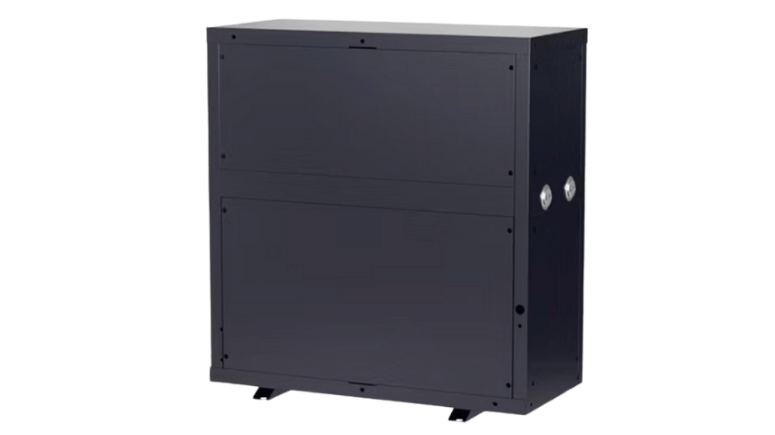 The entire heat pump system is contained within a single compact cabinet, typically installed indoors in a utility room, making for a clean, simple, and space-saving installation.